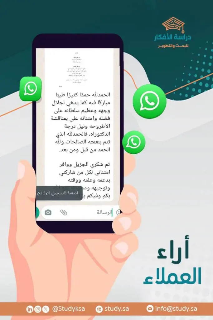 Are you facing difficulties in preparing your Master’s or PhD thesis? Don’t worry, because with Study, you now have an academic partner who supports you from idea to defense. We don’t offer ready-made services, but rather provide well-researched scientific solutions that contribute to enhancing the quality of your thesis and achieving your university’s requirements with precision and professionalism. Our team of academics and specialists from various fields is ready to provide comprehensive support throughout all stages of scientific research, according to the highest academic standards.